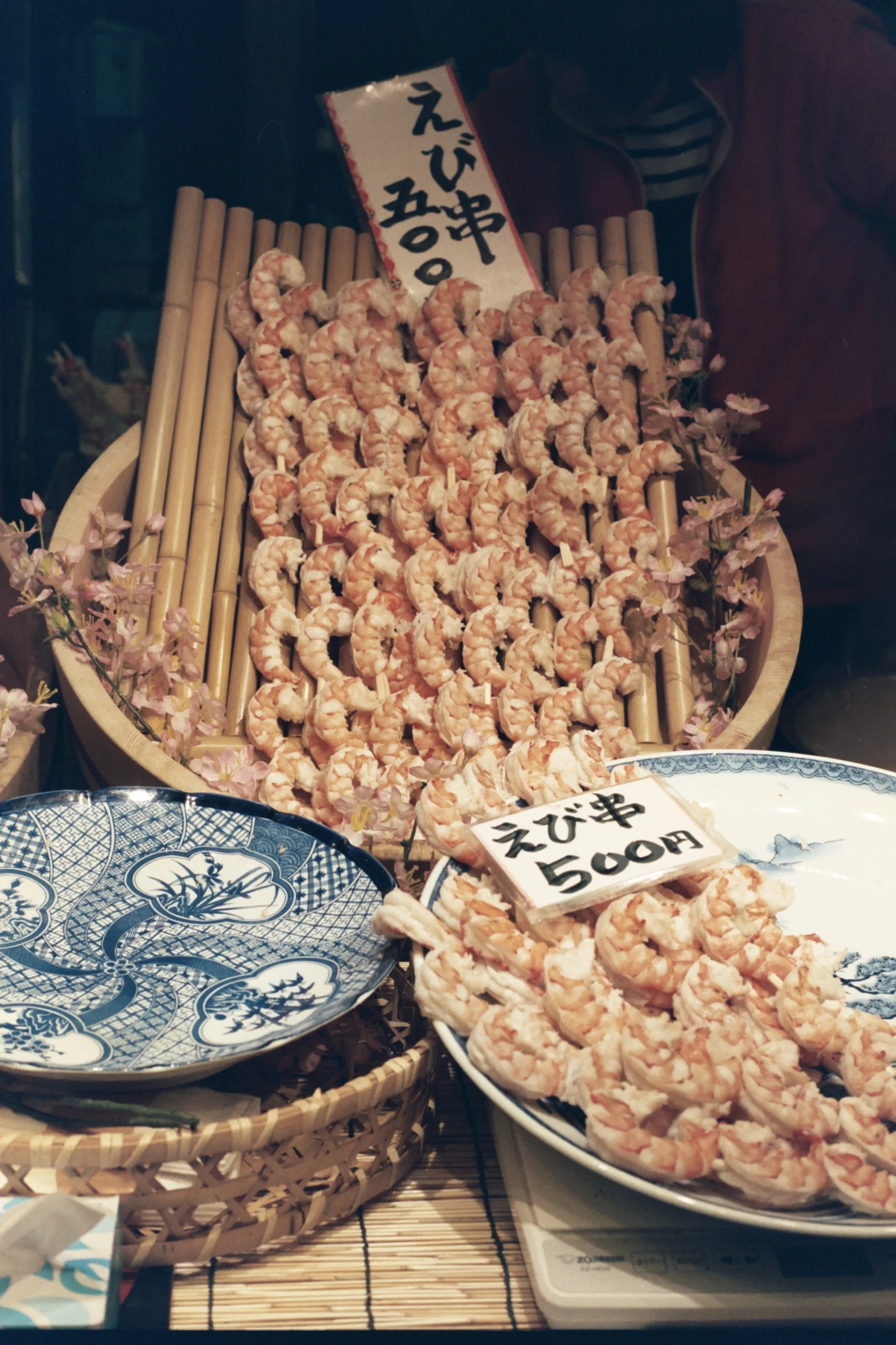 Walk through Nishiki Market and you will find multiple vendors selling all kinds of foods, such as shrimps on a stick, oysters, and traditional Japanese confections.